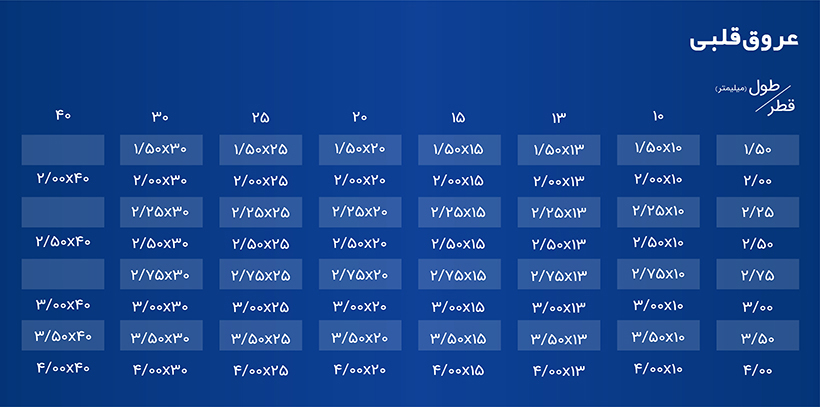 جدول ابعاد